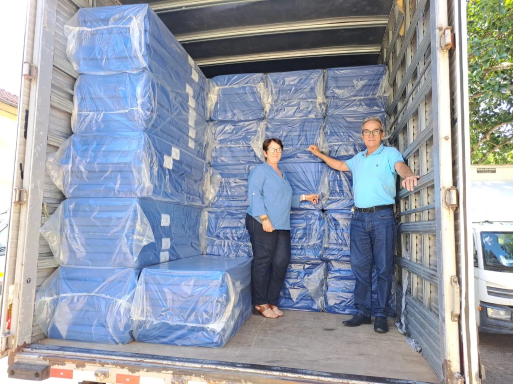 Os colchonetes estão sendo entregues em Centros Educacionais Municipais de Primeira Infância e Escolas Municipais de Educação Básica. Nesta segunda-feira, 16 de março, o prefeito Paulo Silva e a secretária de Educação acompanharam a chegada dos materiais.